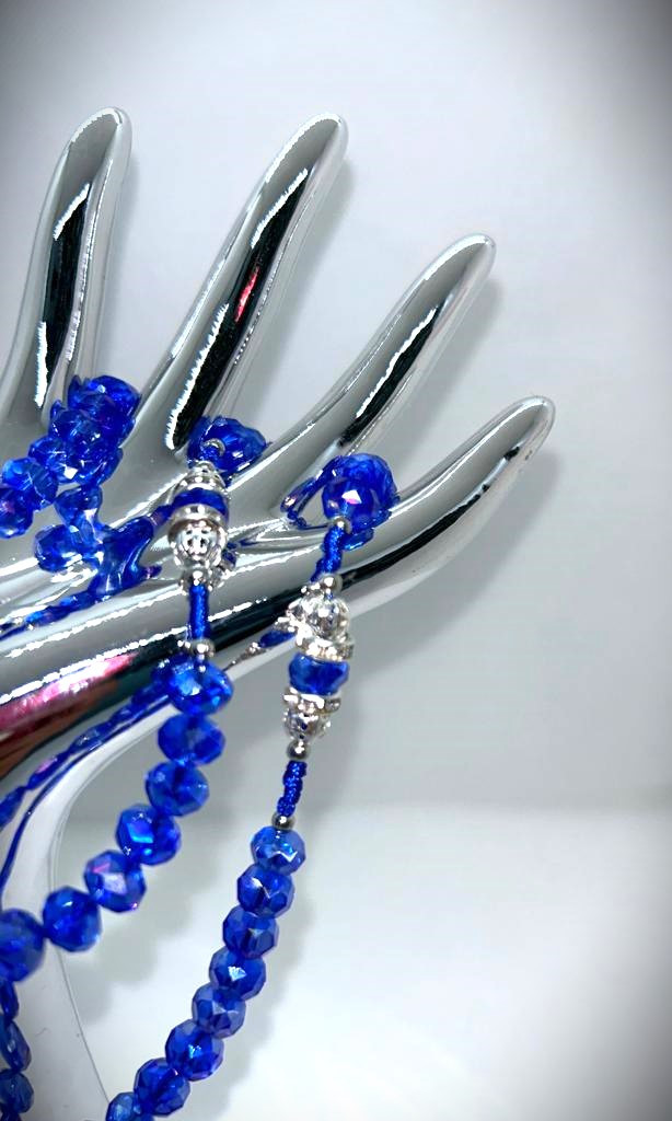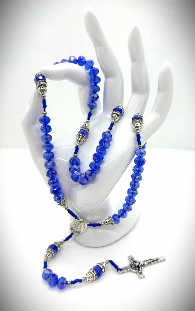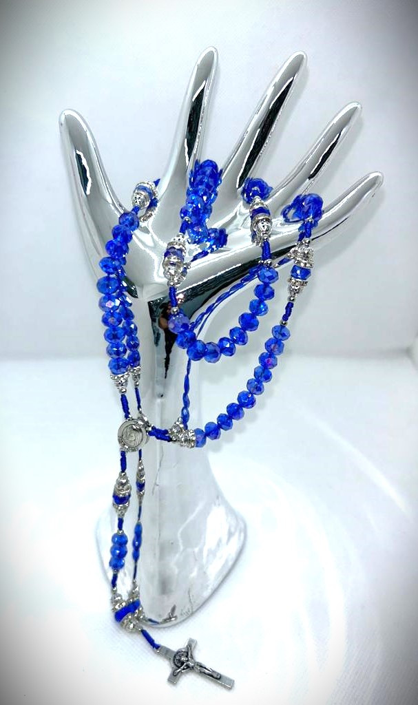 Handmade Rosary made of Crystal and Silver-plated beads with silk thread.