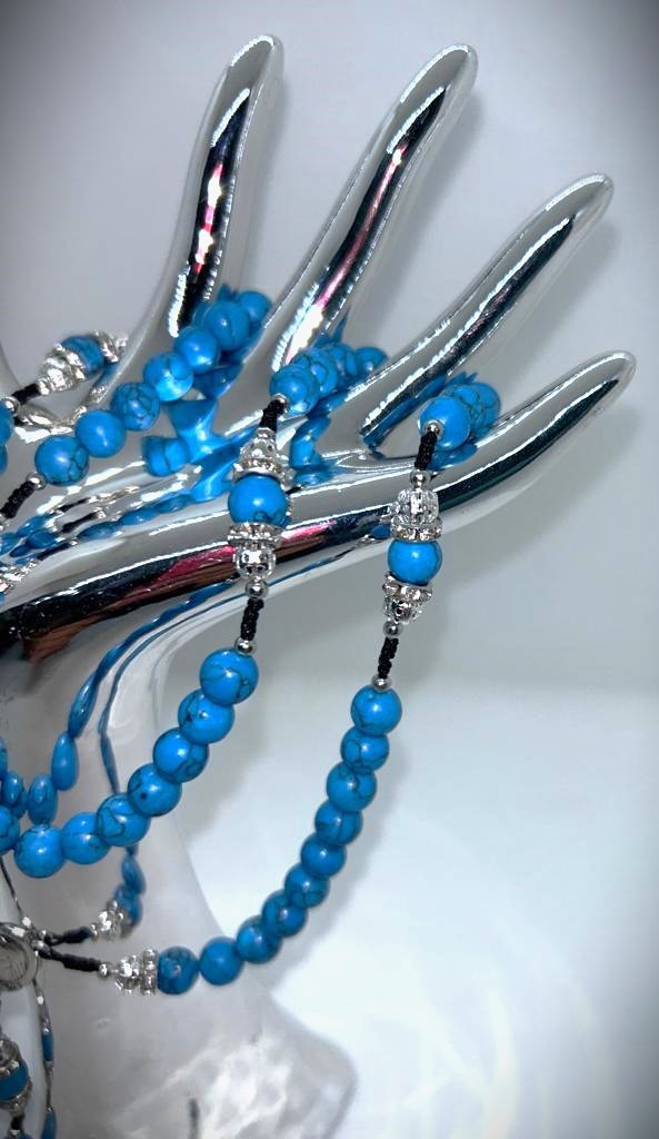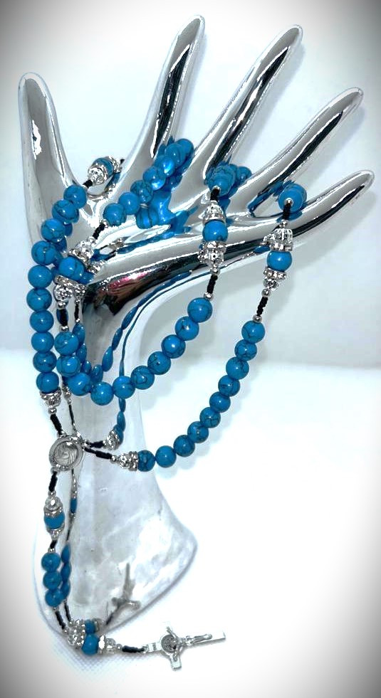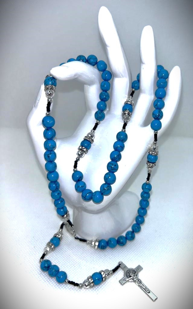 Handmade Rosary made of marble stone and Silver-plated beads with silk thread.