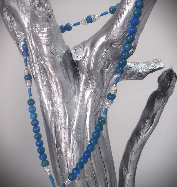 Handmade Rosary made of glass and Silver-plated beads with silk thread.