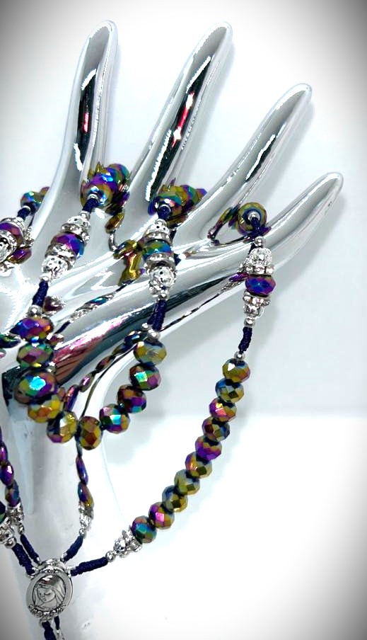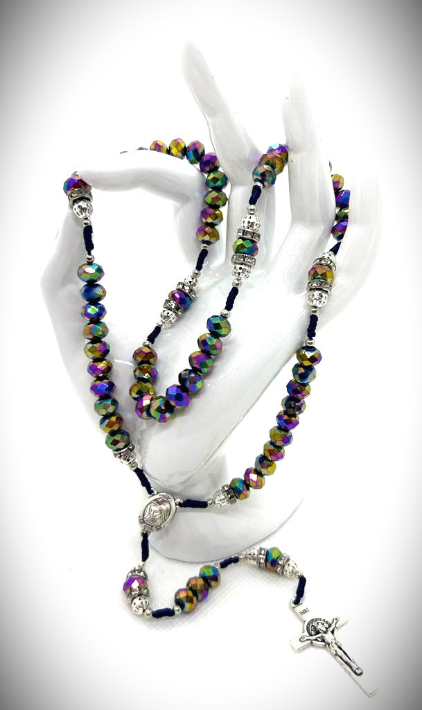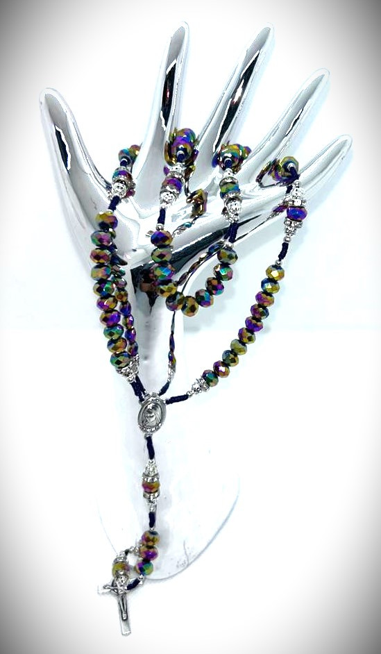 Handmade Rosary made of Crystal and Silver-plated beads with silk thread.